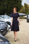 Short sleeve, fit and flare, 2 bust darts, waist seam detail, unlined, concealed zip.